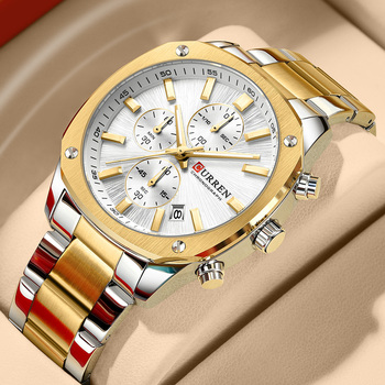 커렌 비즈니스 캐주얼 크로노그래프 시계 남성용 스테인리스 밴드 발광 핸즈 쿼츠 무브먼트 방수 시계